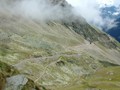 Flexenpass (1.773 m) mit Nieselregen auf uns. Ziel des Tages war das regennasse Gaschurn. Frisch gestärkt ging es am nächsten Tag bei nasskaltem Wetter die